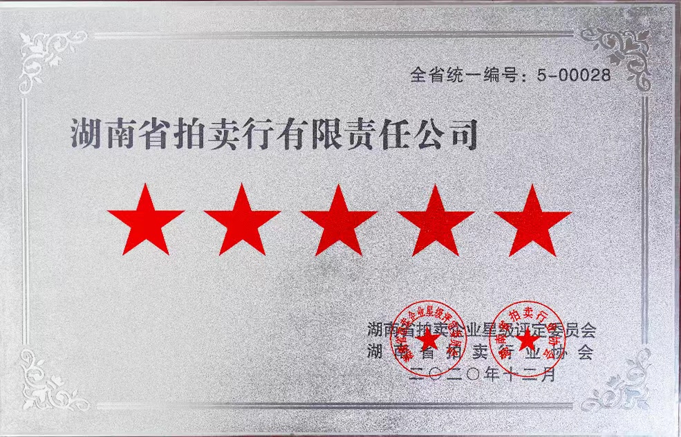 湖南省拍賣行有限責任公司成立于1993年,注冊資金1000萬元。前身為湖南省拍賣行,系全國第一批拍賣機構,原為省工商局下屬企業,2016年劃轉至湖南省國資委,現為湖南興湘投資控股集團有限公司、湖南省招標有限責任公司下屬的全資國企。系中國拍賣行業協會、湖南省拍賣行業協會、湖南省招標投標協會等會員單位,是中拍協AAA級、省拍協5星級信譽單位?,F有國家注冊拍賣師7人,有企業管理、金融、財稅、招投標代理、計算機網絡技術等專業人才。公司配備專業的法律顧問團隊,擁有豐富的國有資產處置經驗,保證處置流程合法合規。