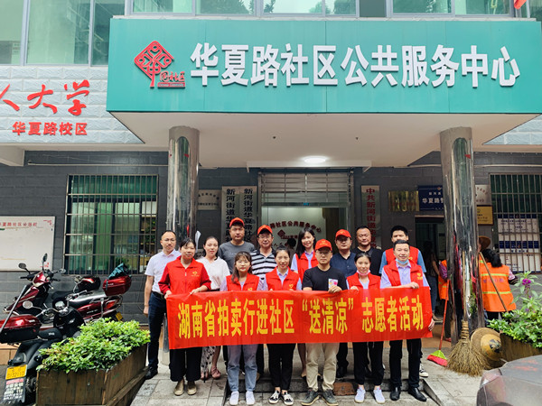2020年6月19日中午,省拍賣行全體員工到華夏路社區為環衛工人開展“盛夏送清涼”志愿者活動。