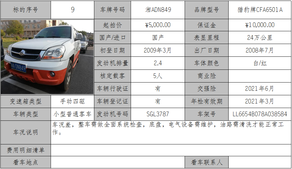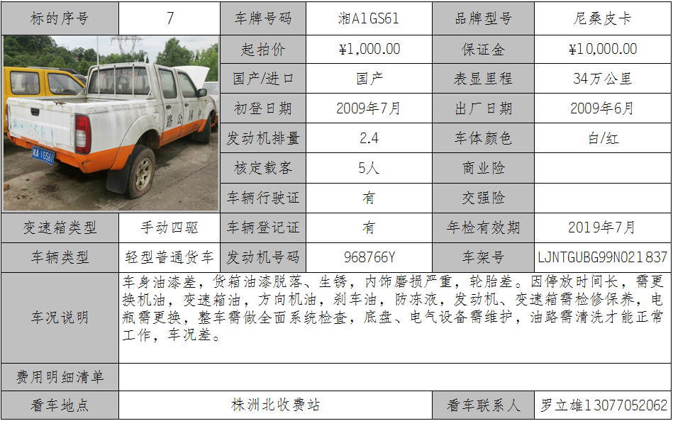 2020年7月24日車輛拍賣公告