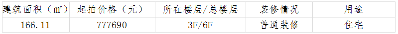 一、 標的名稱:張家界市軍地坪街道辦事處吳家峪居委會軍邸路302房產(百溪花園住宅小區C棟302),建筑面積:166.11㎡,起拍價人民幣77.769萬元,保證金人民幣20萬元。