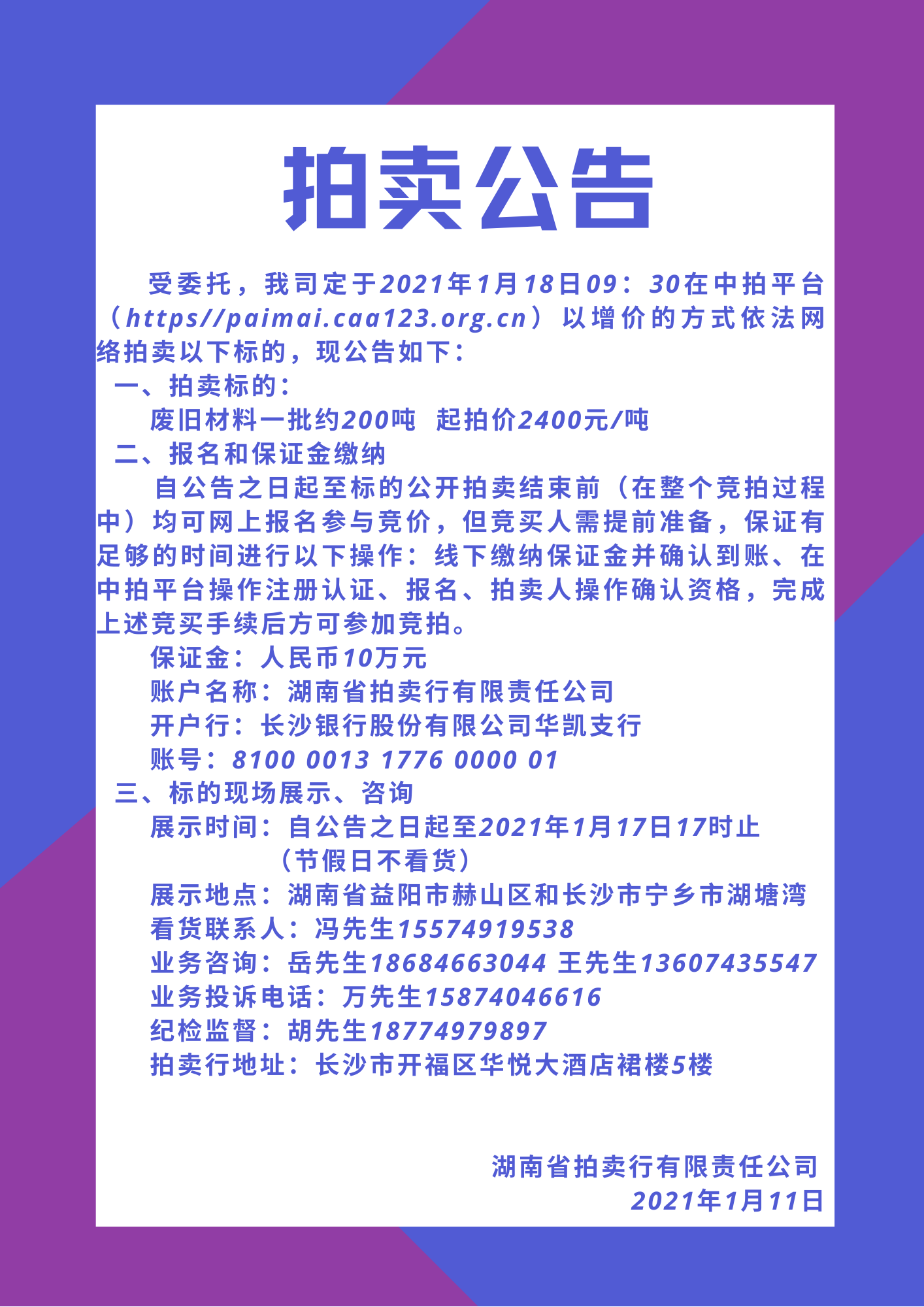 【廢舊材料】2021年1月18日廢舊材料一批拍賣公告