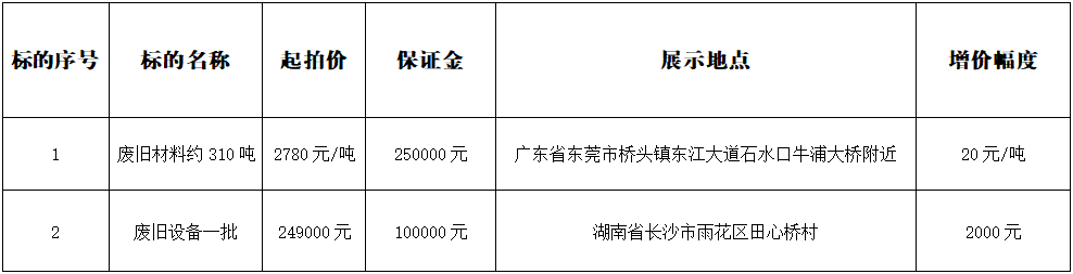 展示地點(diǎn):標(biāo)的存放地(詳見(jiàn)表格)