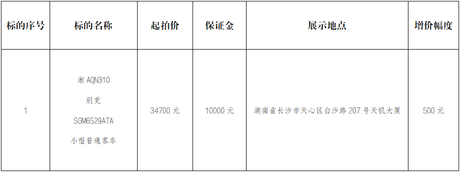 詳情見湖南省聯(lián)合產(chǎn)權(quán)交易所網(wǎng)站(網(wǎng)址:www.hnaee.com)及湖南省拍賣行微信公眾號(hào)。