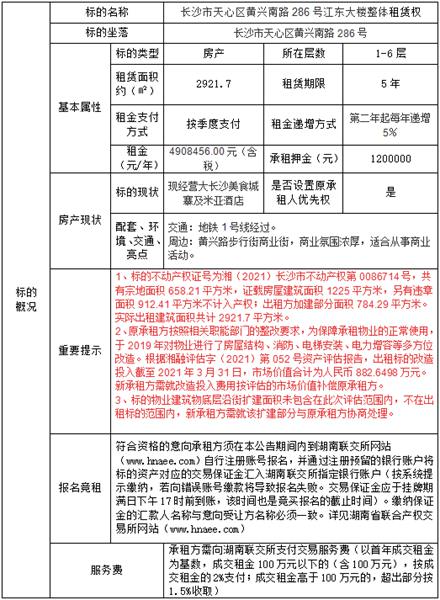 【招租公告】長沙市天心區黃興南路286號江東大樓整體租賃權公開招租