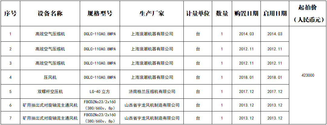 一、拍賣標的:煤礦機械設備一批