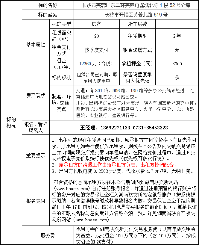 【招租】長沙市芙蓉區東二環芙蓉電器城北棟1樓52號倉庫公開招租