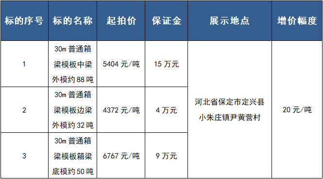 展示時間:公告之日起至2021年8月26日(9:00-17:00,節假日不看貨)