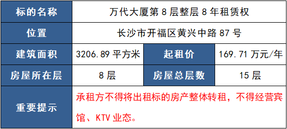 【招租公告】長沙市開福區萬代大廈第8層整層公開招租