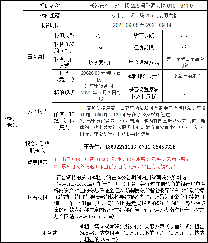 【招租公告】長沙市桂花路140號門面和能源大樓610、611房招租公告