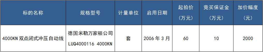 【廢舊設備】2021年9月24日沖壓自動線拍賣公告