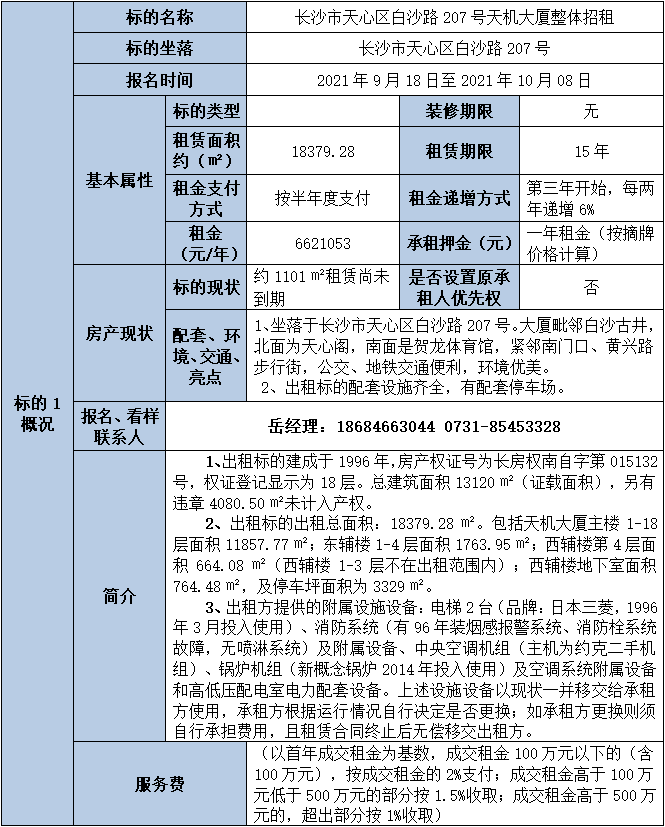 承租人同時(shí)應(yīng)遵守聯(lián)交所發(fā)布的《長沙市天心區(qū)白沙路207號(hào)(原白沙中路88號(hào))天機(jī)大廈整體招租項(xiàng)目公告》(項(xiàng)目編號(hào)N0124FCZZ210149)的條款。