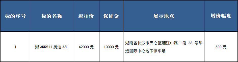 保證金賬戶名稱:湖南省拍賣行有限責任公司