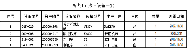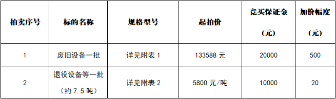 【廢舊設備】2021年11月23日廢舊設備拍賣公告