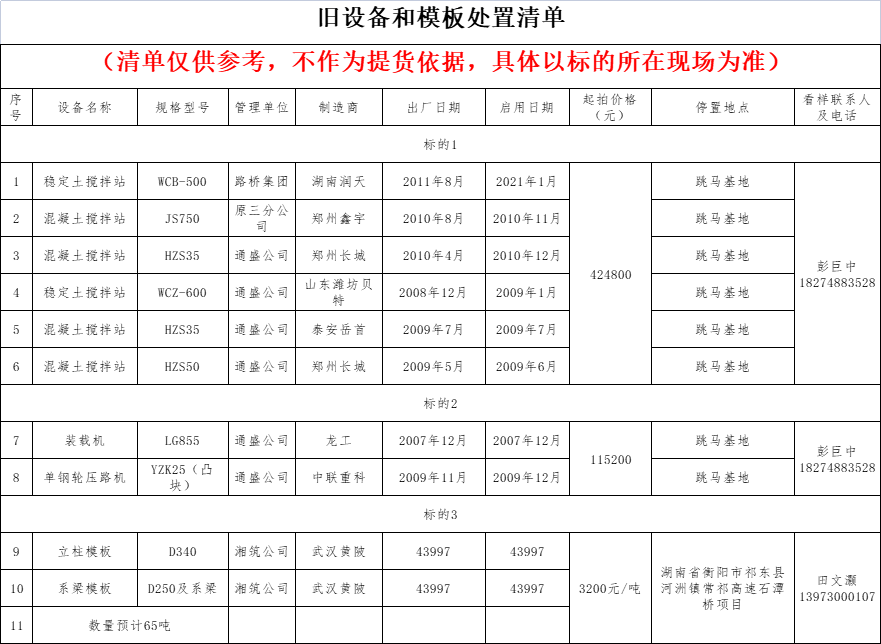 圖片及清單僅作為參考,以標的現場實際情況為準。