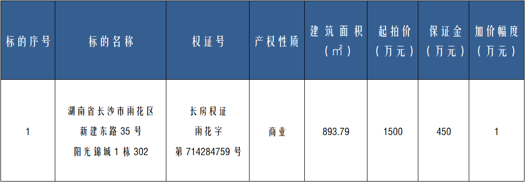 保證金賬戶名稱:湖南省拍賣行有限責任公司