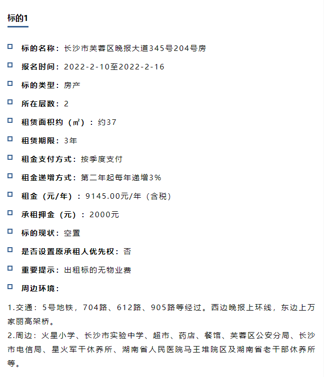【招租】長沙市芙蓉區兩處房產招租公告