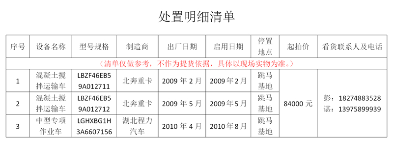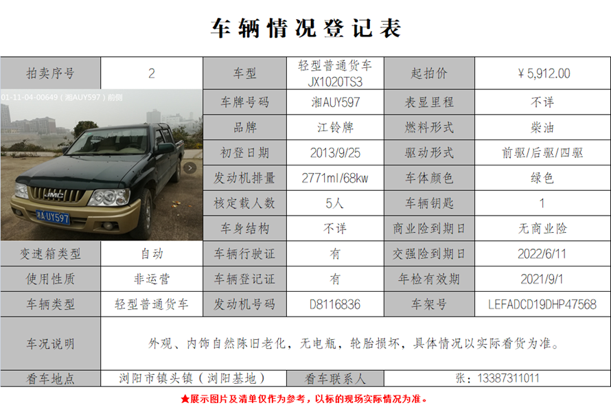 展示時間:自公告之日起至2022年3月25日下午17:00止(節假日不看貨)