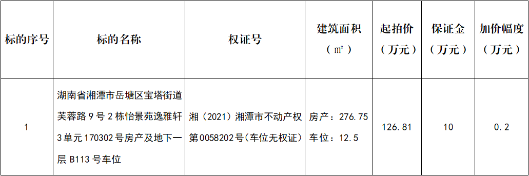 保證金賬戶名稱:湖南省拍賣行有限責任公司