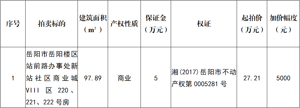 轉賬時注明“競買人名稱+岳陽市商業城拍賣保證金”