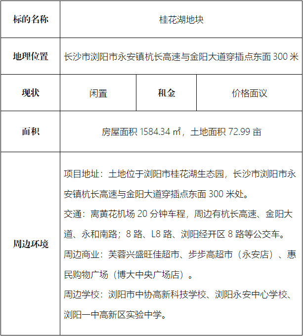 土地招租丨長沙市瀏陽市永安鎮桂花湖地塊招租公告