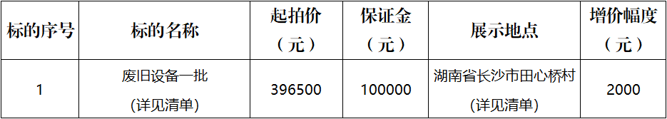 保證金賬戶名稱:湖南省拍賣行有限責任公司
