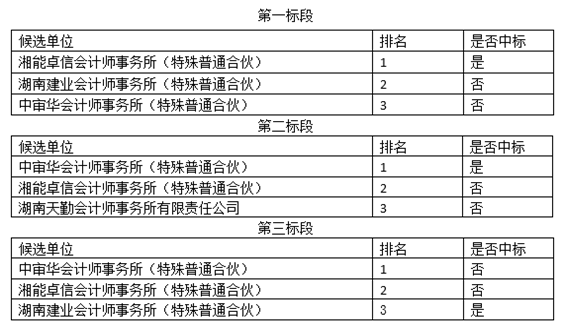 第三標段中選供應商:湖南建業會計師事務所(特殊普通合伙)