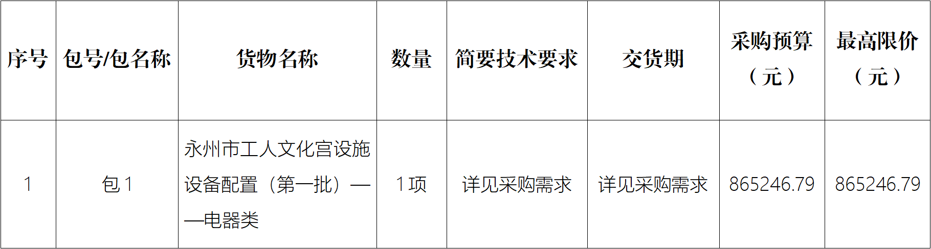 永州市工人文化宮設施設備配置(第一批)——電器類競爭性磋商公告