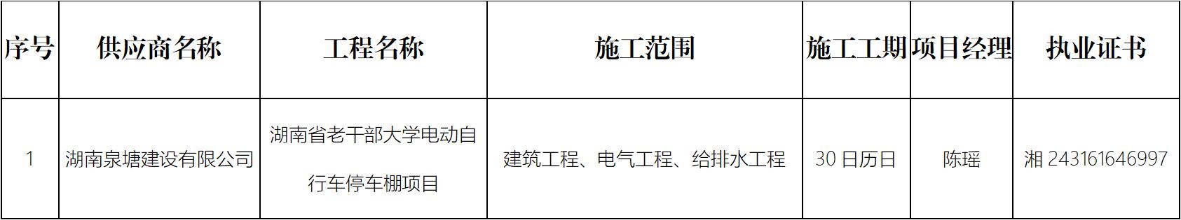 湖南省老干部大學電動自行車停車棚項目成交公告