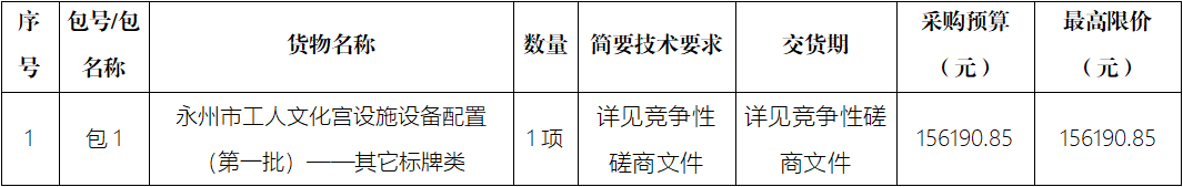 永州市工人文化宮設施設備配置(第一批)——其它標牌類競爭性磋商公告(第二次)
