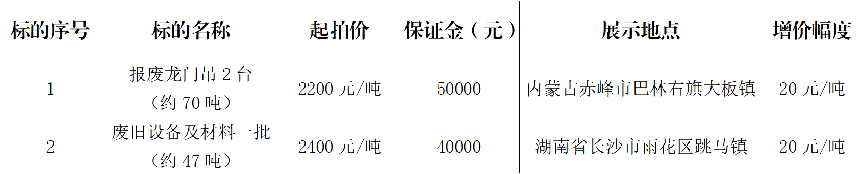 展示地點(diǎn):標(biāo)的存放地(詳見表格)