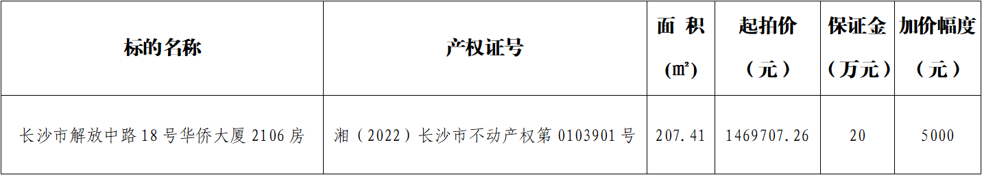 轉賬時注明“競買人名稱+華僑大廈2106房拍賣保證金”
