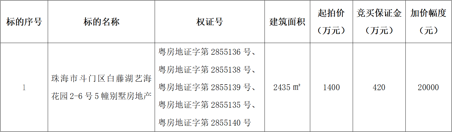 意向競買人報名及保證金繳納按照湖南省聯(lián)合產(chǎn)權(quán)交易所(網(wǎng)址:www.hnaee.com)發(fā)布的《珠海市斗門區(qū)白藤湖藝海花園2-6號5幢別墅房地產(chǎn)》(國資監(jiān)測編號:GR2022HN1001555-2)(項目編號:N0124FC220305-2)相關(guān)要求辦理。具有競買資格的意向競買人應在拍賣會前兩個工作日完成中拍平臺注冊認證,在拍賣會結(jié)束前辦理完成中拍平臺報名,參加競買。