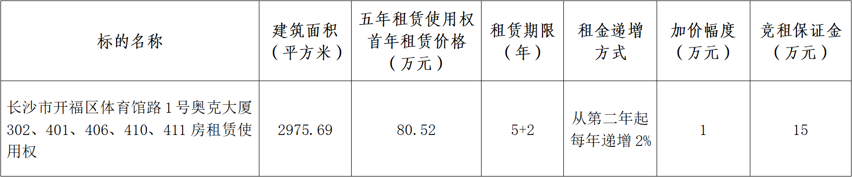 十一、其他事項詳見由出租人蓋章的競租文件(可關注微信公眾號“湖南省拍賣行”獲取,亦可現場向拍賣人索取)。