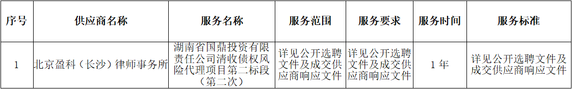 二、項目名稱:湖南省國鼎投資有限責任公司清收債權風險代理項目第二標段(第二次)