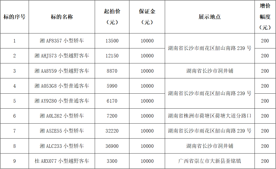 保證金賬戶名稱:湖南省拍賣行有限責任公司