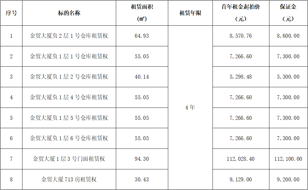 4、起拍價與增價幅度:以一年度租金為起拍價(增價幅度 500 元/次) 。