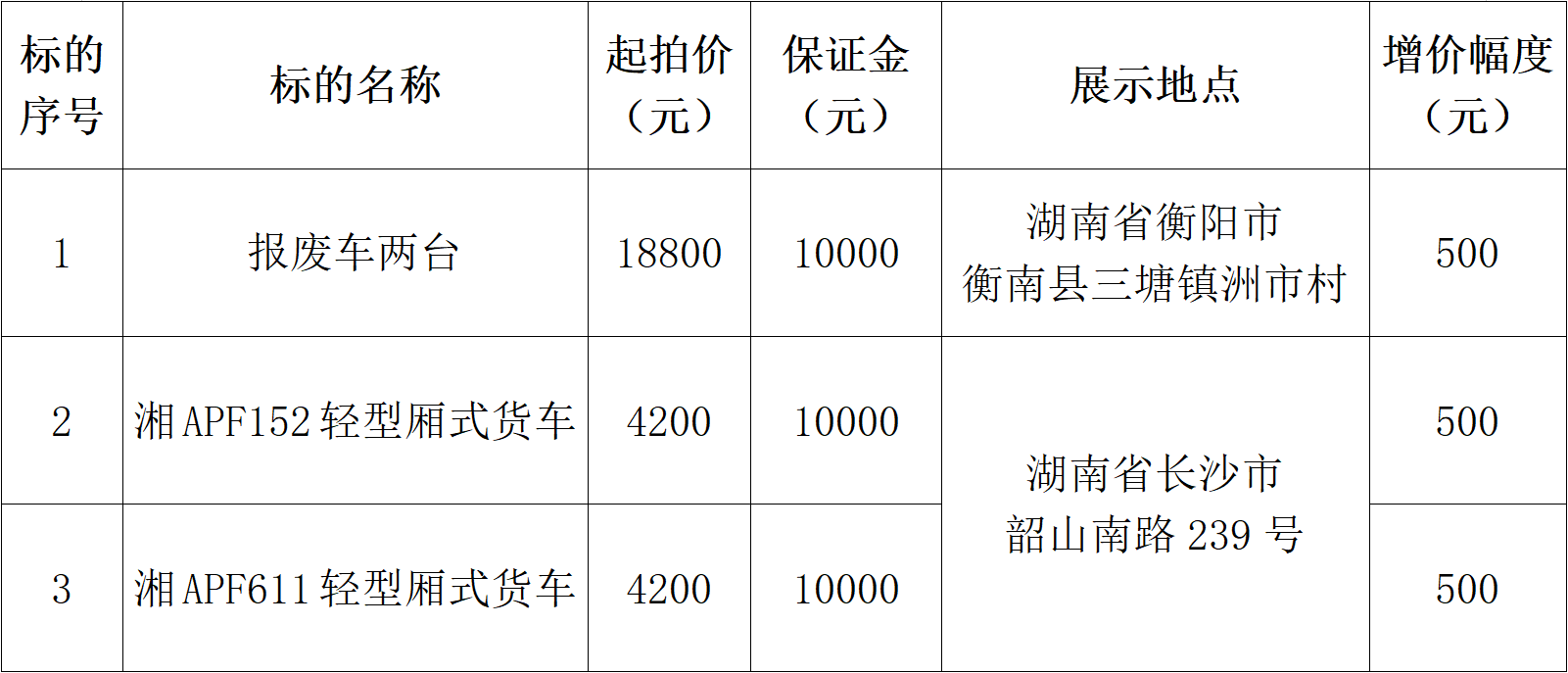 保證金賬戶名稱:湖南省拍賣行有限責任公司