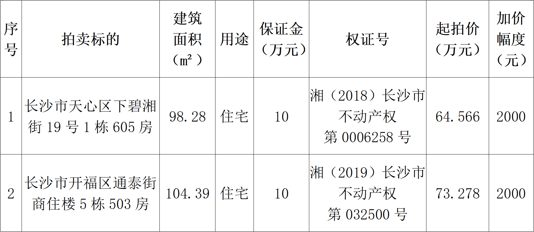 1.競買人條件:①具有完全民事行為能力的自然人,法律另有規(guī)定的除外。委托他人辦理的,應(yīng)提交授權(quán)委托書。②拍賣人通過“信用中國”網(wǎng)站(www.creditchina.gov.cn)查詢,對列入失信被執(zhí)行人、重大稅收違法案件當事人,拍賣人有權(quán)拒絕其參與競買。③依照《拍賣法》第二十二條、三十條規(guī)定不得參與本次公開拍賣的應(yīng)當自行回避,不得參加競買。④拍賣標的屬于長沙市限購區(qū)域內(nèi)商品住房范疇,意向競買人須確保自身符合限購政策規(guī)定的購房資格。