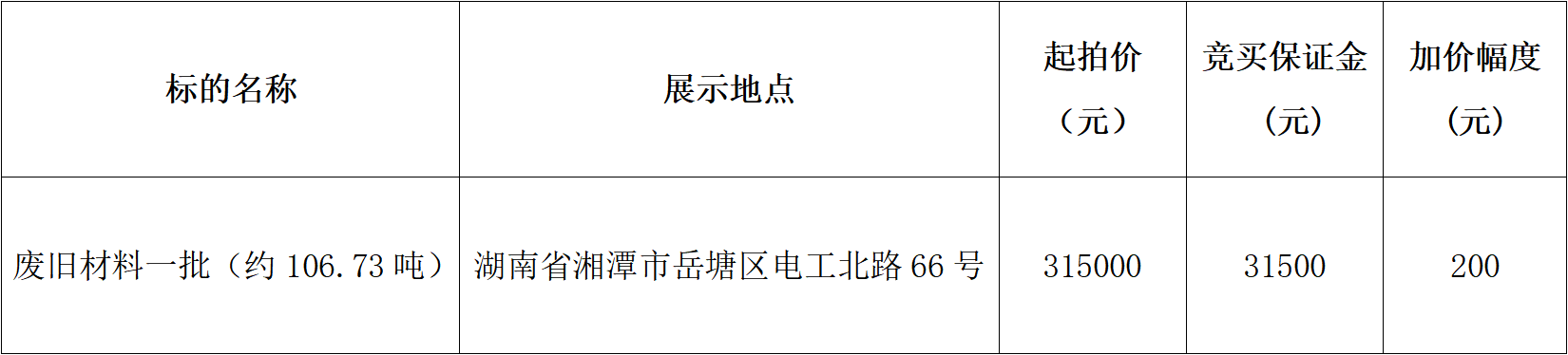 保證金賬戶名稱:湖南省拍賣行有限責任公司